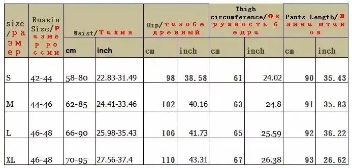 Pants Size Chart