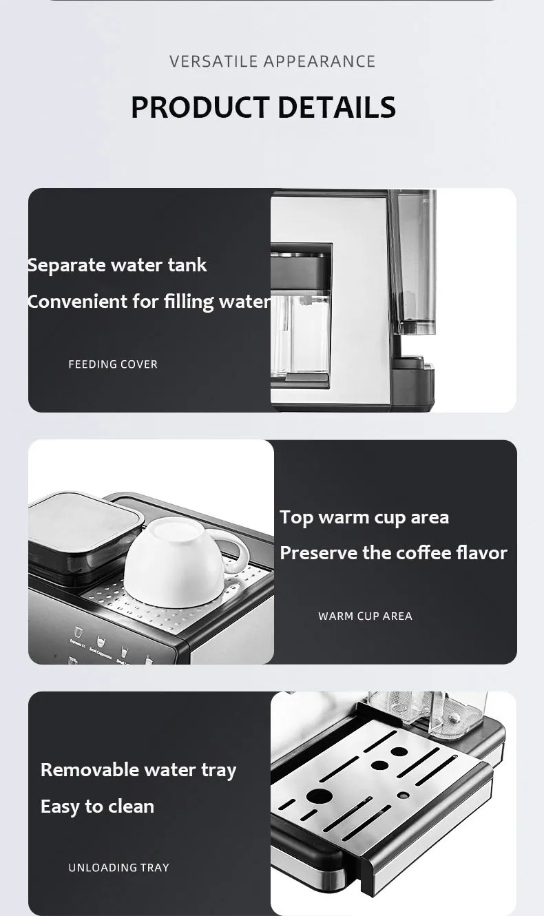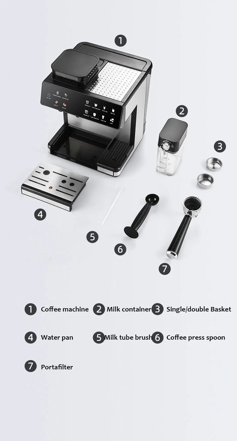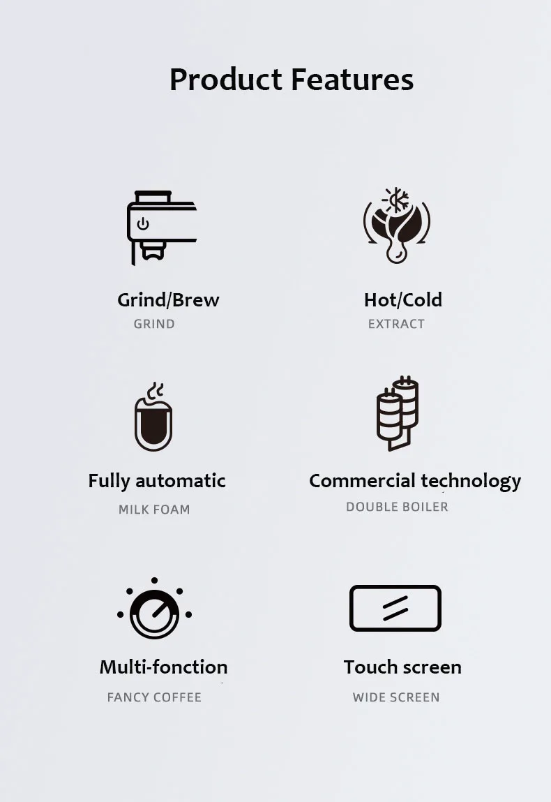 SPECIFICHE Marca: FANZHI Capacità (tazza): <5 tazze Certificazione: CE Funzione: Espresso Sostanze chimiche potenzialmente pericolose: Nessuna Origine: Cina continentale Potenza (W): >299W Tipo: Macchina per caffè espresso completamente automatica Tensione: 220V-240V