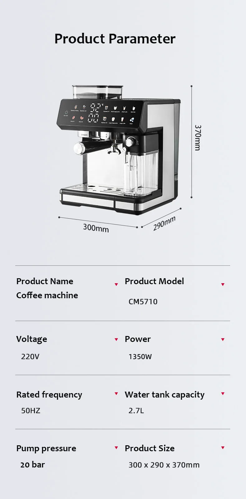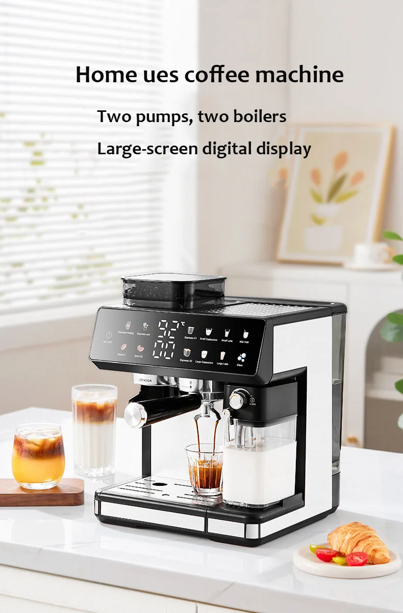 Macchina per caffè espresso semiautomatica italiana da 220 V con funzione di macinazione, macchina per caffè espresso per uso domestico, macchina per caffè commerciale