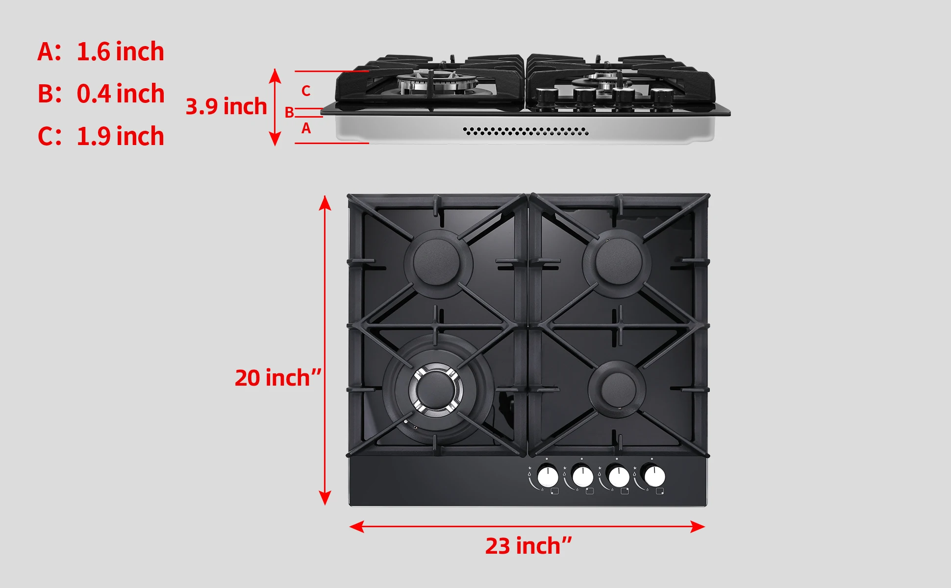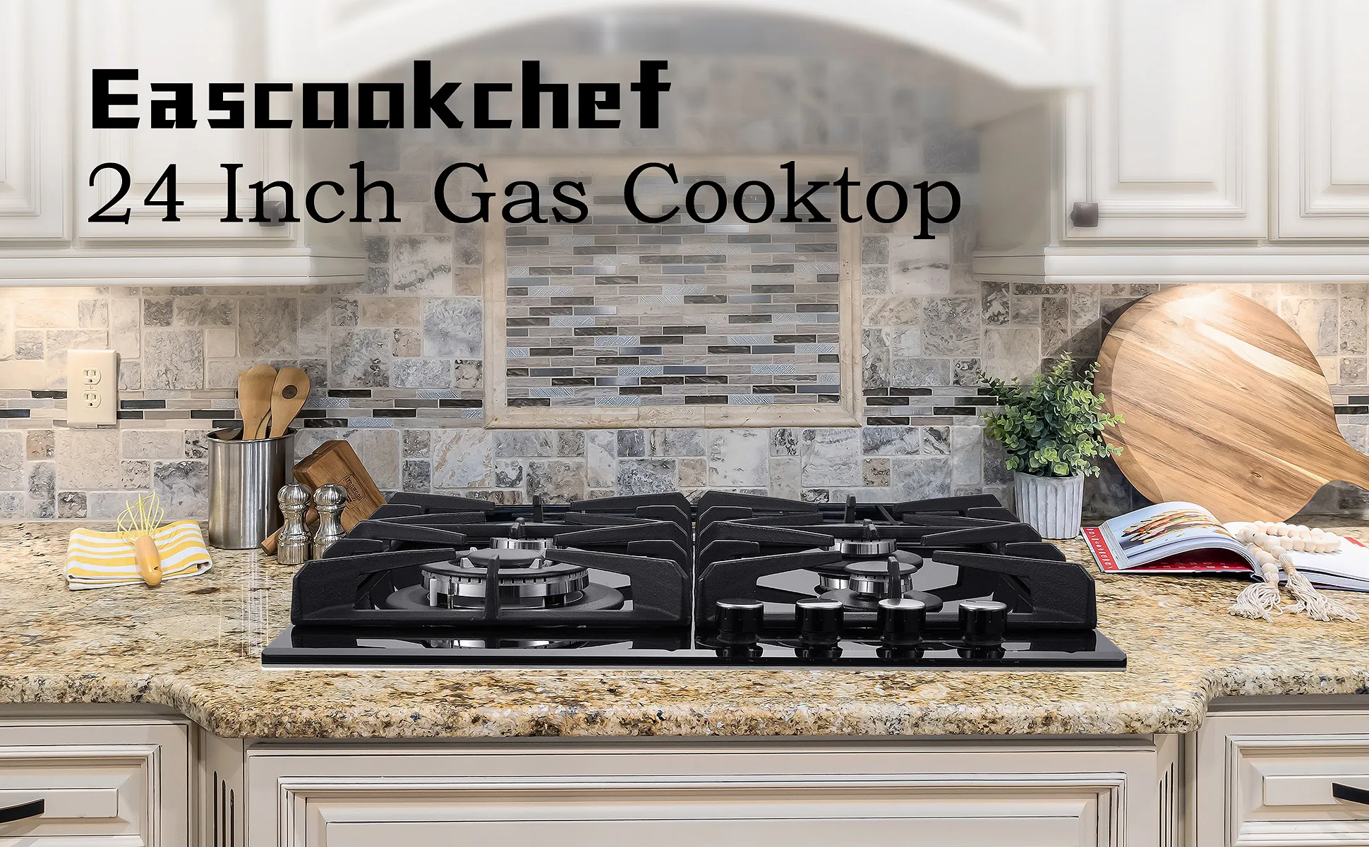 Gas Cooktop 24 inch, 8mm Tempered Glass in Black