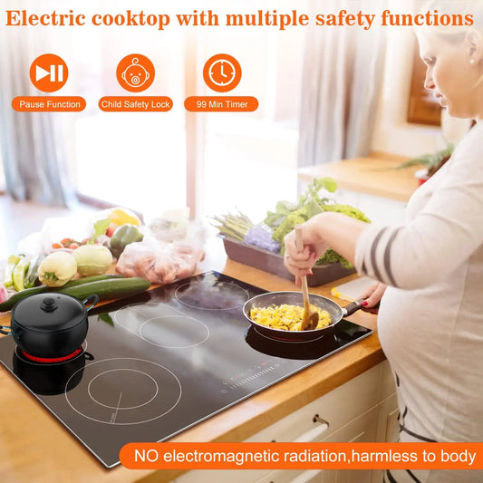 Piano cottura elettrico Karinear da 30 pollici, piano cottura elettrico a 5 fuochi da 8400 W, piano cottura in ceramica integrato con telaio, 220-240 V, cablaggio fisso