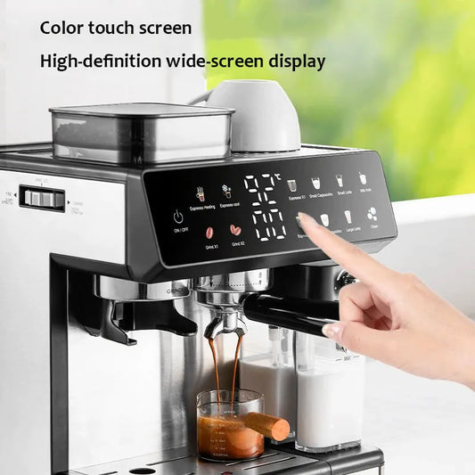 Macchina per caffè espresso italiana per uso domestico, ad alta pressione, automatica, con schiuma di latte, schermo a colori intelligente, macchina per caffè integrata