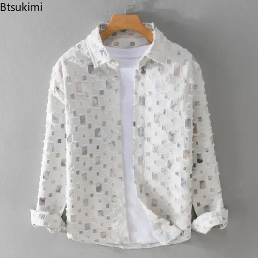 2026 Nuovi cappotti da uomo in plaid con colori contrastanti, camicetta casual ampia a maniche lunghe in cotone 100%, abbigliamento da uomo alla moda