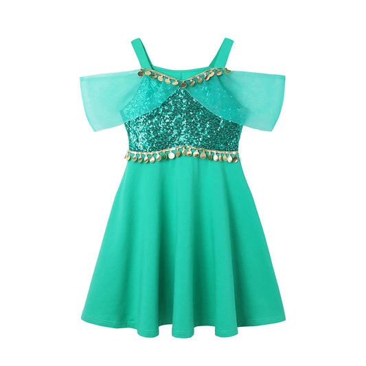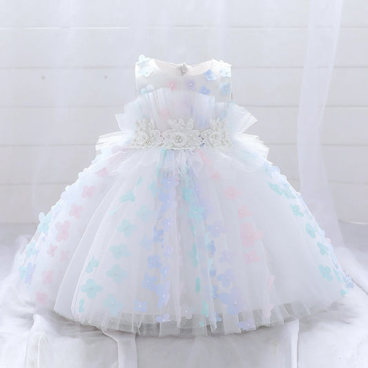 Abito estivo casual da principessa per bambine, ideale per Capodanno, matrimoni, feste di compleanno, senza maniche, in tulle arricciato.