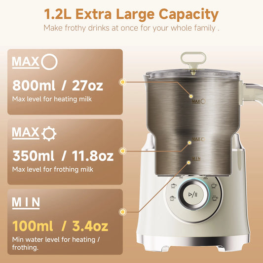 BioloMix 7 in 1 Steamer, montalatte elettrico staccabile, schiumatore automatico caldo/freddo per caffè e cioccolata calda, lavabile in lavastoviglie
