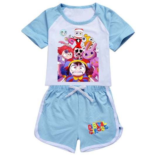 Abbigliamento per ragazzi: fantastico pigiama estivo digitale a tema circo con maglietta a maniche corte in cotone e pantaloncini, costume sportivo per ragazze 2896